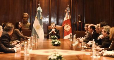 Durante el arribo al aeropuerto, la intendente Ing. Norma Fuentes, le hizo entrega al mandatario nacional el decreto que lo declaró Huésped de Honor en su estadía en la Madre de ciudades.