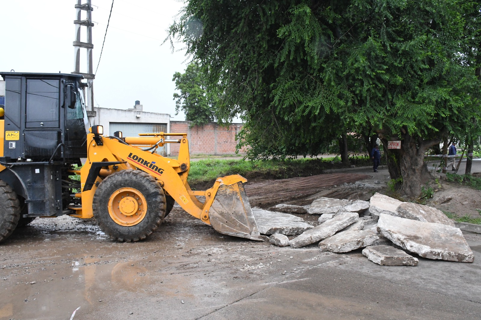 Personal de la repartición efectuó la demolición de la calzada dañada con levantamientos y, posteriormente, procedió al retiro de los escombros, la preparación de la subrasante y el llenado con hormigón simple en un espesor de 20 centímetros.