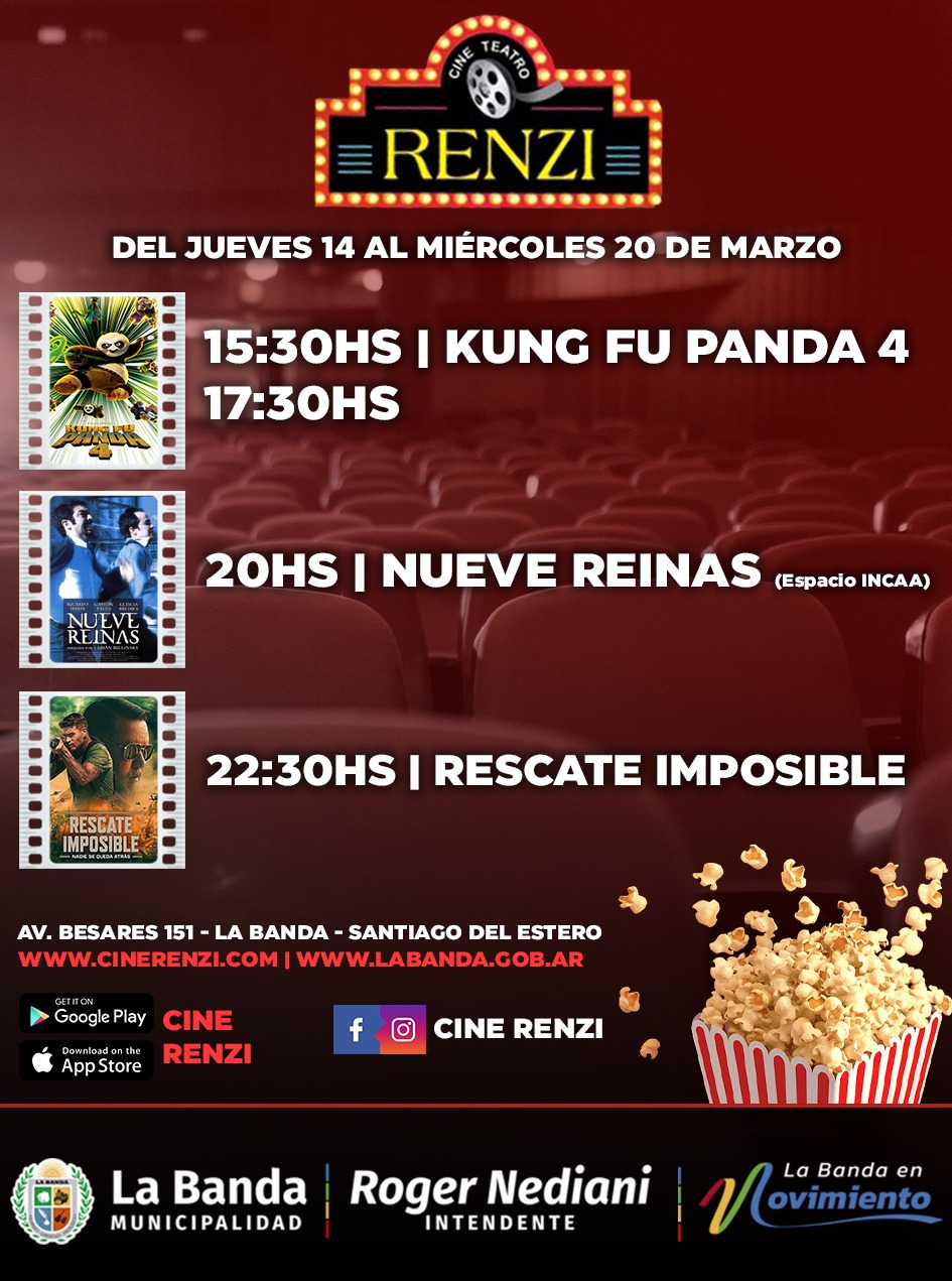 El Cine Teatro Municipal Renzi, dependiente de la Secretaría de Comunicación, renueva su cartelera con la película “Rescate Imposible” del género de suspenso y acción desde el jueves 14 hasta el miércoles 20 de marzo.