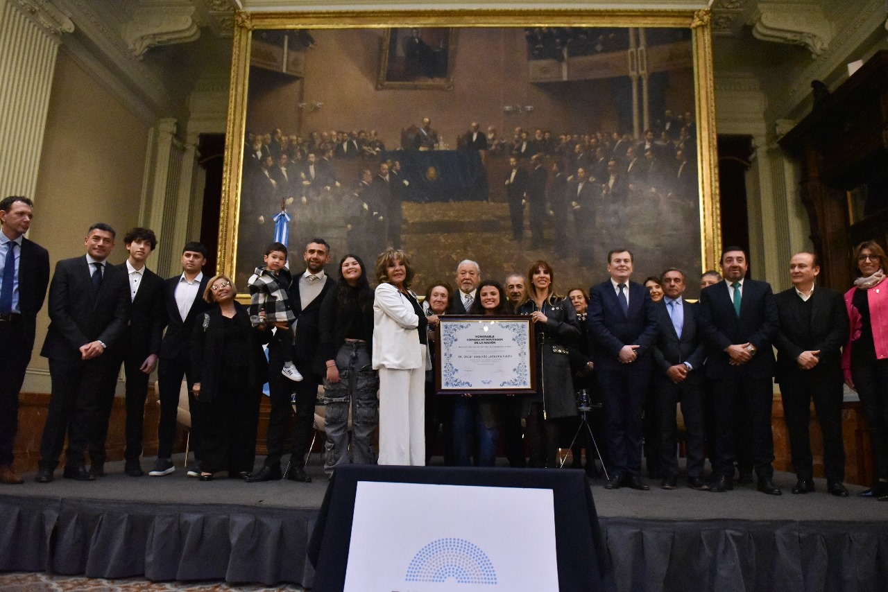El gobernador Gerardo Zamora y la senadora Claudia Ledesma Abdala de Zamora participaron esta tarde de la emotiva y cálida ceremonia en la que la Cámara de Diputados de la Nación distinguió con la “Mención de Honor Diputado Nacional Dr. Juan Bautista Alberdi” al médico y referente sanitario santiagueño Oscar Ledesma Patiño y a representantes del Instituto Alexander Fleming, por su destacada tarea y trayectoria en materia sanitaria.