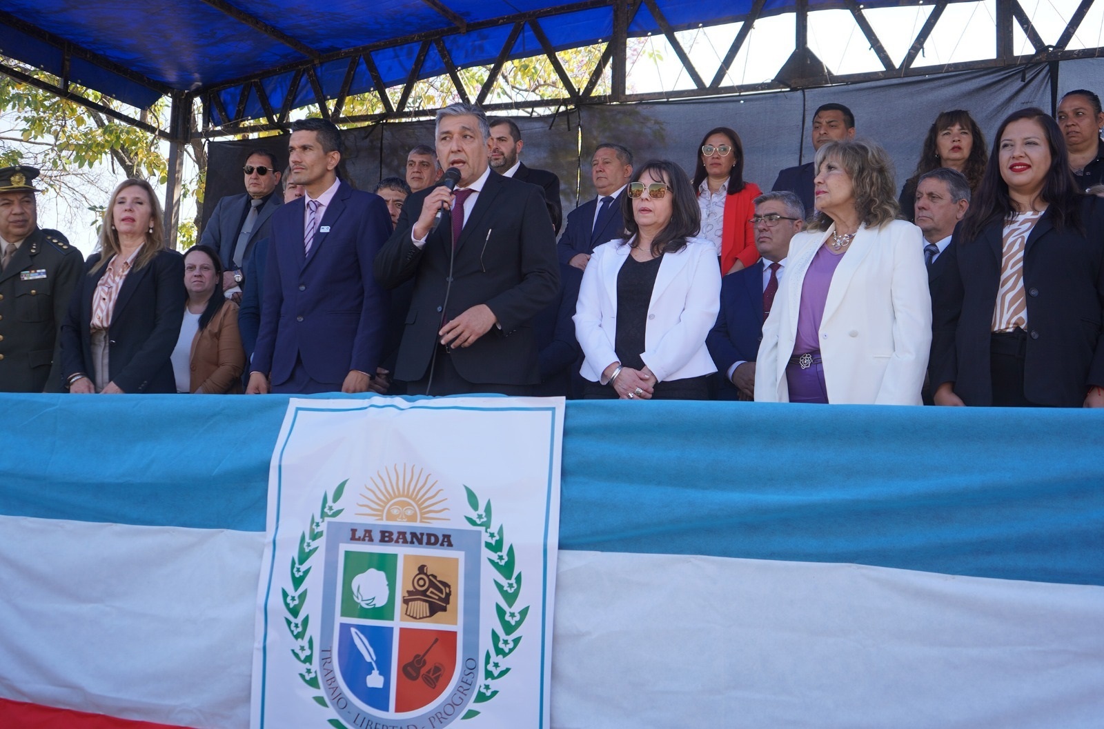 El intendente Roger Elias Nediani encabezó las ceremonias protocolares y el desfile cívico militar que se realizaron el lunes 16 de septiembre en horas de la mañana para conmemorar y celebrar el 112° aniversario de la “Cuna de poetas, cantores y bailarines”. Del mismo también participaron, el viceintendente Gabriel Santillán; Parlamentaria del Mercosur, Ana María Corradi; Diputada Nacional, Dra. María Luisa Montoto de Rogel; Diputada Provincial,Mariana Morales; Autoridades del Ejecutivo y Legislativo Municipal, Ejército Argentino, Prefectura Naval Argentina, Gendarmería Nacional, Policía Federal y la Policía de la Provincia; Arzobispo de la Diócesis de Santiago del Estero, Vicente Bokalic; Sacerdotes del Decanato Banda; Pastores evangélicos; Rectores, de la Universidad de Nacional de Santiago del Estero, Hector Paz y de la Universidad Católica de Santiago del Estero, Luis Lucena.