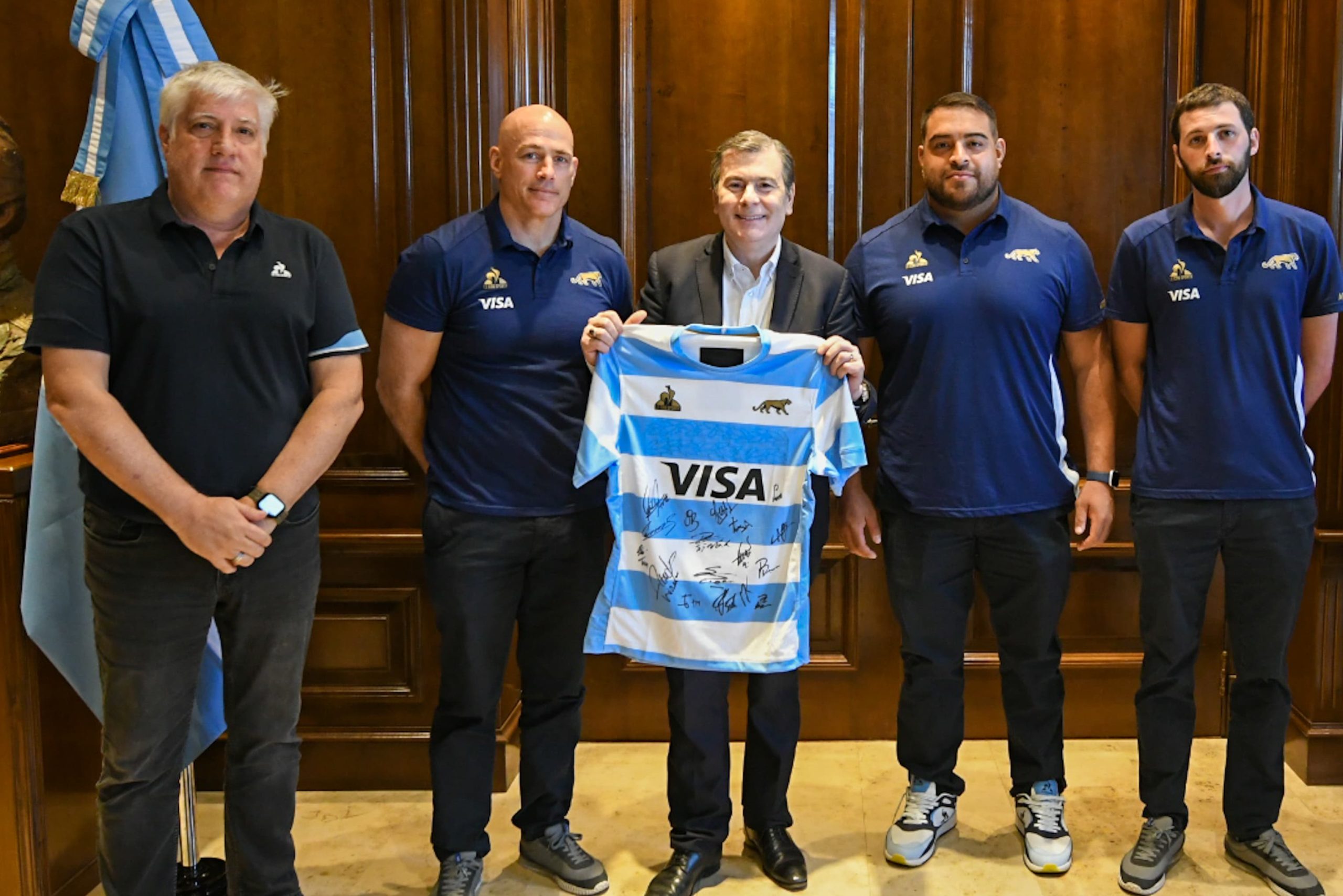 El gobernador Gerardo Zamora recibió este jueves por la mañana en Casa de Gobierno la visita de Felipe Contepomi, técnico del Seleccionado Argentino de Rugby “Los Pumas”, quien estuvo acompañado por el manager del equipo, Juan Passano; el gerente comercial de la Unión Argentina de Rugby, Miguel Dupont, y el jugador santiagueño Pedro Delgado.