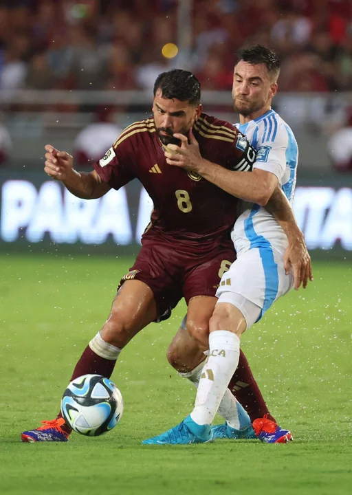 La Selección argentina de fútbol empató en su visita a Venezuela por 1 a 1, en un partido correspondiente a la novena fecha de las eliminatorias Conmebol de cara al Mundial de 2026, y conserva su lugar en la primera posición del grupo, debido a la derrota de Colombia ante Bolivia.