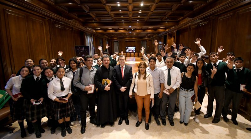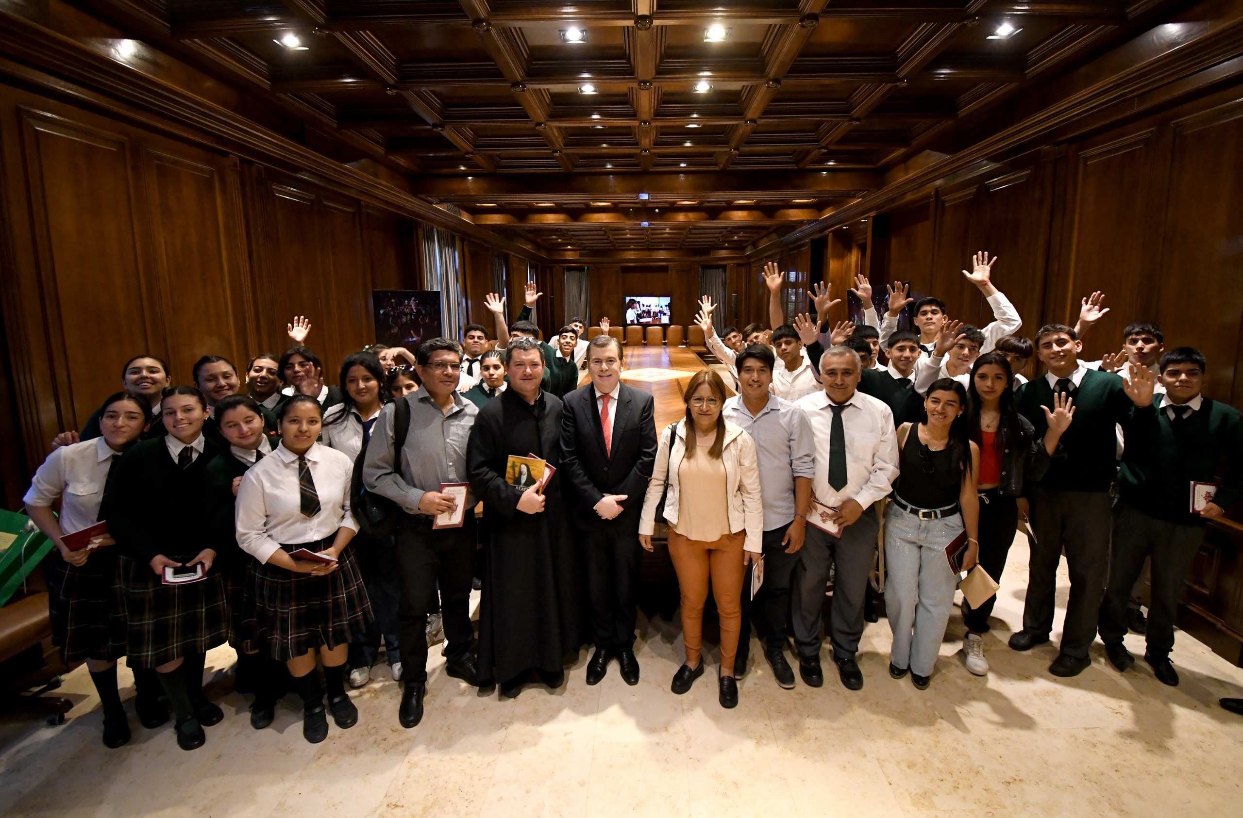 El encuentro se llevó a cabo este miércoles al mediodía en el Salón de Acuerdos, donde el mandatario dio una cálida bienvenida a las delegaciones de estudiantes y a los docentes que los acompañaron.
