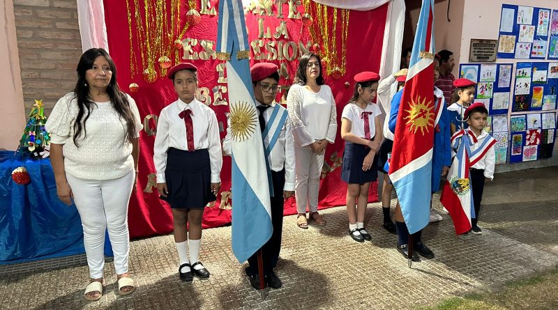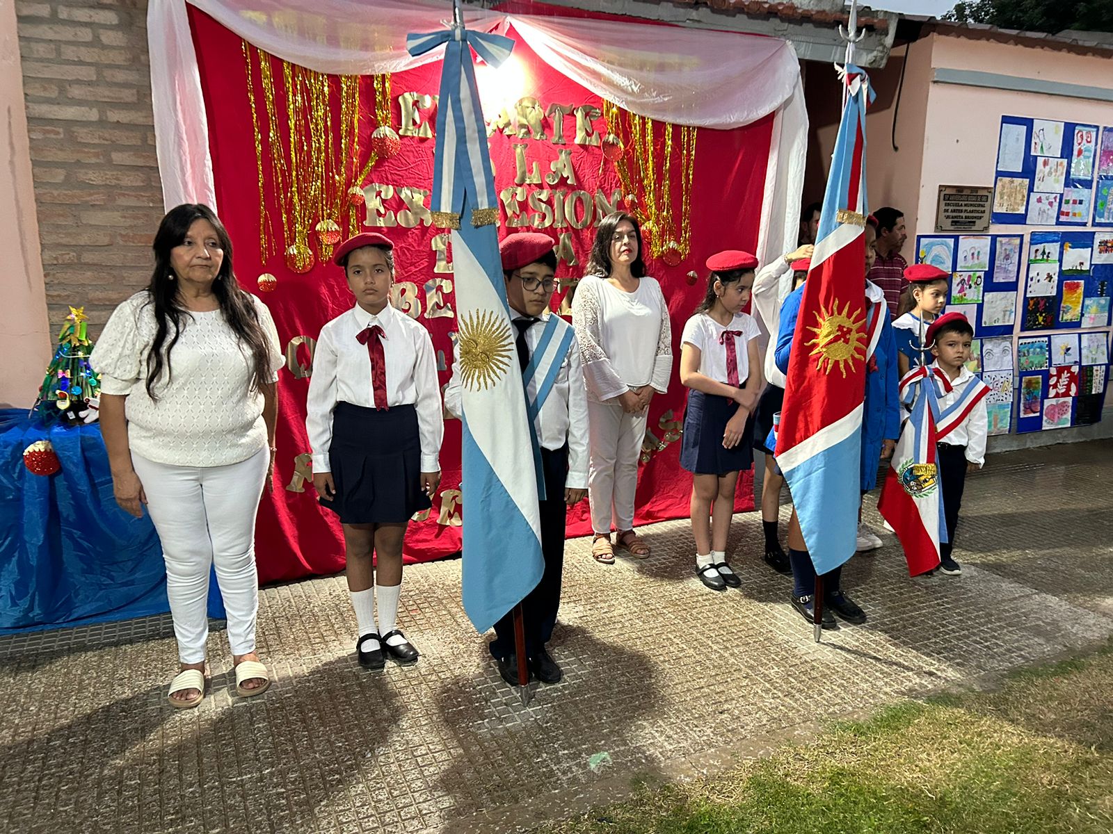 El acto comenzó con la entrada de las banderas de ceremonia y continuó con la entonación del Himno Nacional Argentino, palabras alusivas a cargo de la profesora Ofelia Lazarte y la entrega de diplomas a los egresados Leandro Juarez y Luna Gómez.
