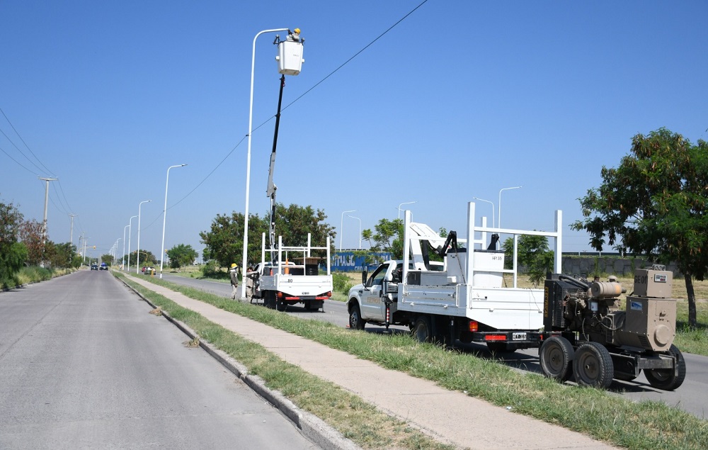 La Municipalidad continúa con la recuperación del alumbrado dañado por vandalismo en la colectora de la Circunvalación