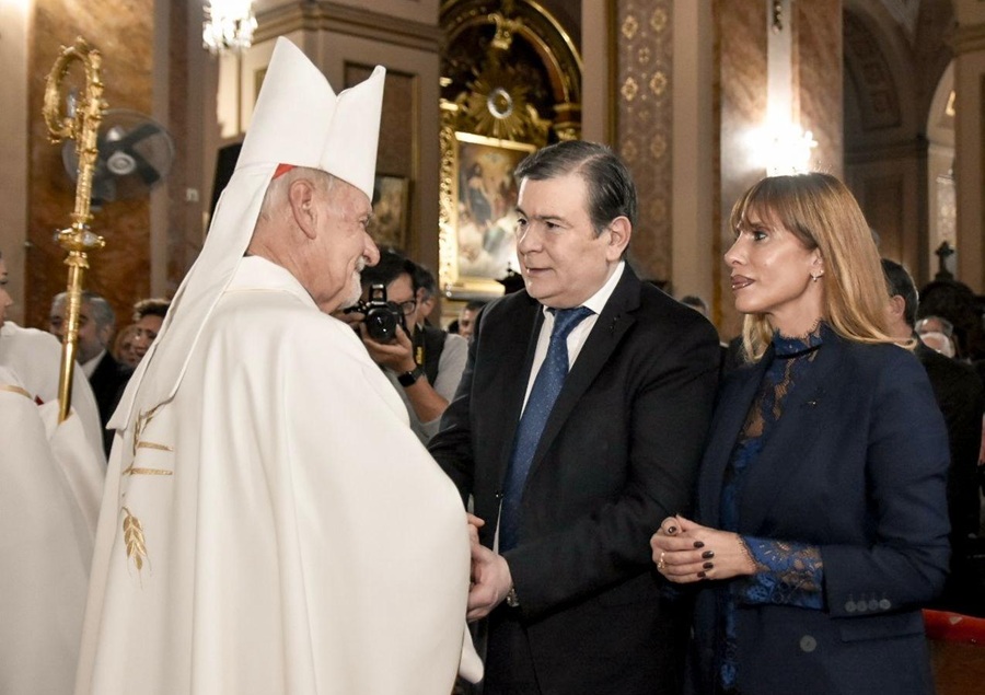El gobernador Gerardo Zamora, acompañado de la senadora Claudia Ledesma Abdala de Zamora, participó este lunes por la tarde de la santa misa que se realizó en la Catedral Basílica por el fallecimiento del Papa Francisco