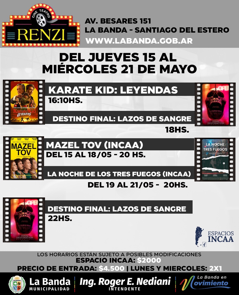 El cine teatro municipal Renzi renueva su cartelera desde el jueves 15 hasta el miércoles 21 con el estreno de la esperada secuela de la película de terror “Destino final: Lazos de sangre”.