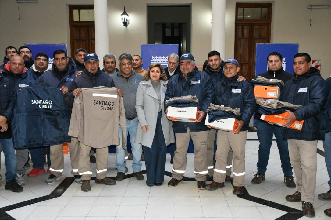 Se otorgaron a más de 160 trabajadores, equipos compuestos por chalecos, camisas y pantalones azules en tela de grafa con cintas reflectivas y botines de seguridad de cuero liso, planta antimicótica, puntera de acero y plantilla confort antideslizante.