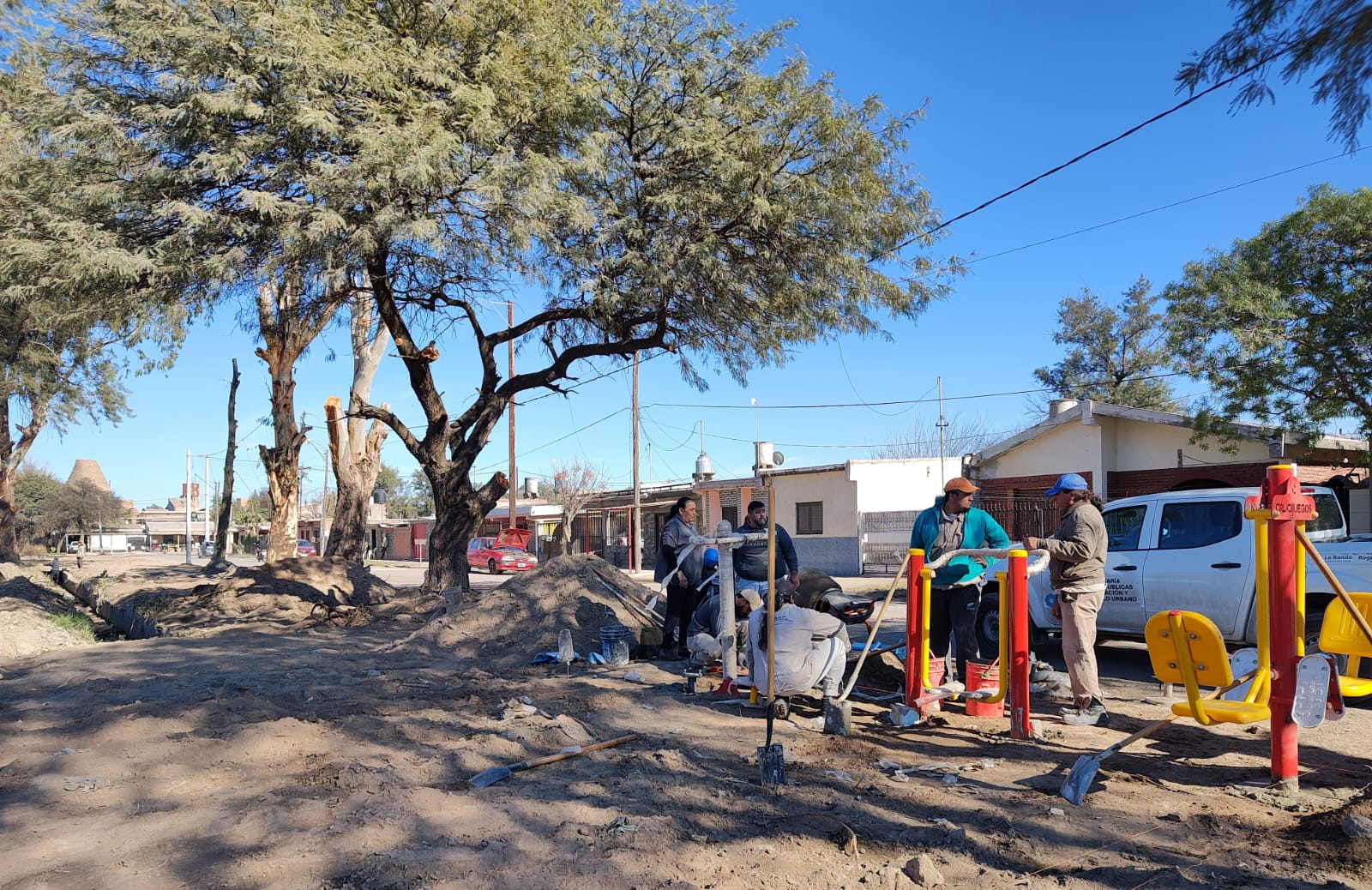 La Secretaría de Obras Públicas de la Municipalidad de La Banda continúa con la creación de un nuevo espacio verde en el barrio Los Lagos que llevará el nombre del reconocido folclorista recientemente fallecido, Mario “Musha” Carabajal.