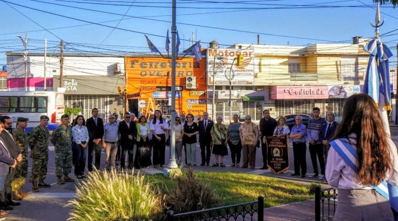 Durante el acto se entonaron las estrofas del Himno Nacional Argentino y se realizó la colocación de ofrendas florales al pie del busto que perpetúa la figura del Padre de la Patria.