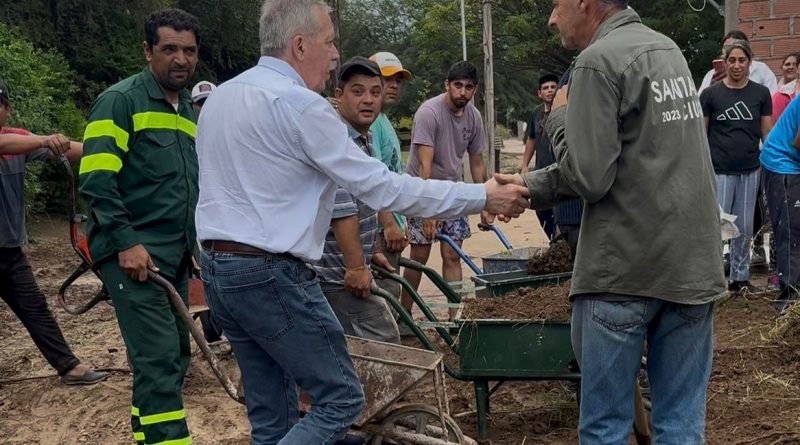 Elías Suárez: Estamos recorriendo distintos sectores donde se están ejecutan trabajos de contención y prevención tras el desborde del río, precisamente en la zona rural del departamento Capital (Los Cardozos), el desagüe pluvial sur y costanera.